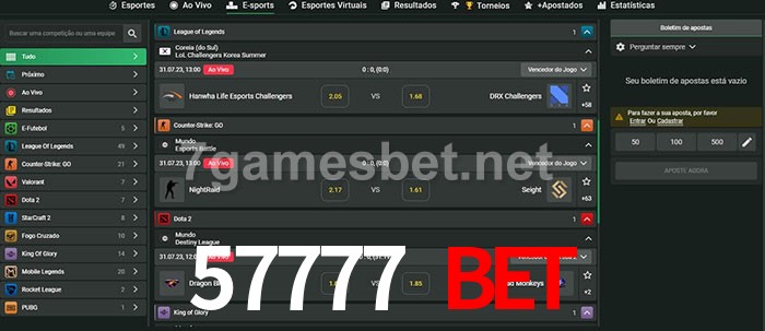 O 57777 Bet oferece uma grande seleção de opções de apostas em e-sports com probabilidades competitivas